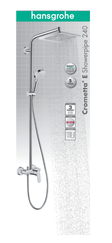 Strona główna » Baterie łazienkowe » Panele i zestawy prysznicowe » HANSGROHE Crometta E 240 Kolumna prysznicowa mieszaczowa 27284000