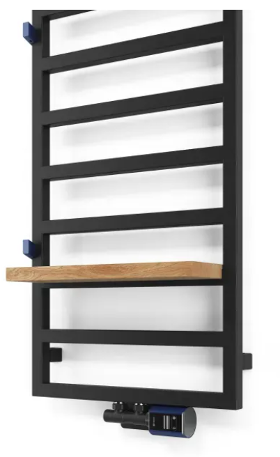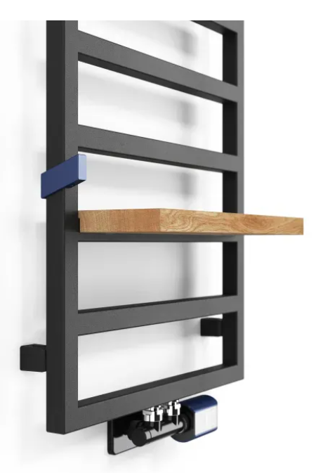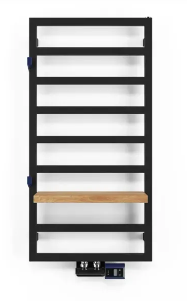 Płaska powierzchnia bryły sprawdzi się we wnętrzach nowoczesnych i inspirowanych designem skandynawskim. Możliwość zastosowania grzałki elektrycznej pozwala wykorzystać grzejnik jako nowoczesną suszarkę do ręczników. Drewniane półki Simple, do kompletowania osobno, umożliwią ekspozycję łazienkowych dodatków lub pozwolą na przechowanie akcesoriów i ręczników.
