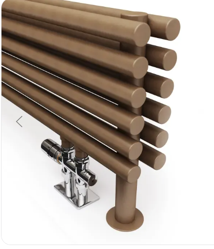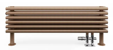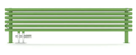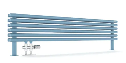 Wolnostojący grzejnik o dużej mocy uzyskanej dzięki zastosowaniu podwójnego rzędu rur.